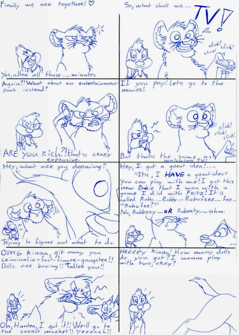 Comic starring Bianca, Hunter, and Kiara, based on actual past playtime (2006).